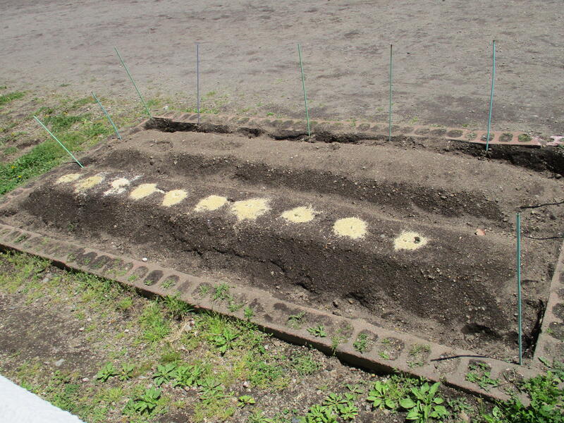 すずらん学級では、教材園で野菜などの栽培をしています。今年は、キュウリ、トウモロコシ、大根、そして藍(藍染めの染料に使います)を植えます。秋の収穫まで、水やり、草取り、土寄せなどのお世話をしながら、作物が生長していく様子を学習します。