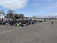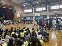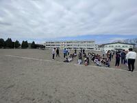 火災を想定した避難訓練をしました。避難指示が出て、グランドへ避難し人員確認まで5分30秒ほどでした。避難後に担当より避難状況の課題等を確認し学級で振り返りをしました。