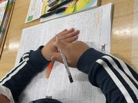 6年生国語は物語教材「帰り道」。描写をもとにして登場人物や互いの関係を読み解いていきます。登場人物の心情がわかる文をみつけていきました。