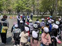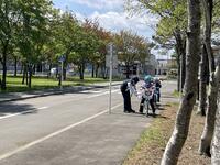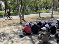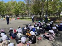 2年生交通安全教室を千歳市防犯交通係、交通安全教育指導員の方々、新富交番の方等のご指導をいただき行いました。交通公園へバスで移動し、準備して頂いた自転車に乗車して、道路での安全な乗り方、横断歩道での安全確認等を一人ずつ自転車に乗車して確認しました。横断歩道、交差点では、必ず安全のために降車しての横断を確認しました。ご家庭でも確認ください。