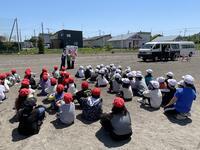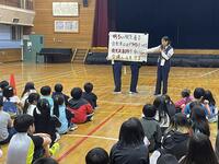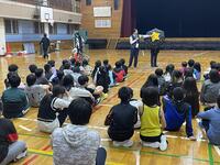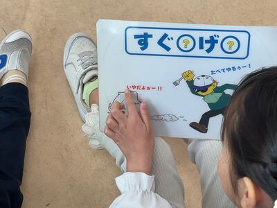 ALSOKさんのサポートを頂き1年生で防犯教室を実施しました。不審者に出会った場合の対応について、逃げたり、大声を出したり、決して付いていかないこと等を学習しました。