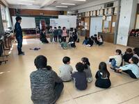 小グループに分かれてまずは自己紹介。上級生のお兄さん、お姉さんが下級生によさこいの踊りを教えてくれました。最後はみんなであわせました。