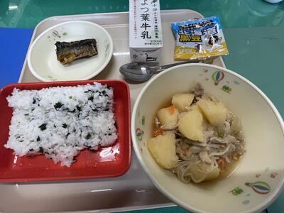 今日のメニューは、わかめご飯、肉じゃが、にしん甘露煮、北海道黒豆でした。わかめご飯、とてもおいしかったみたいです。にしん甘露煮は、はじめて口にした児童もいたのかもしれませんでしたが、食べてみたら、おいしかったみたいです。肉じゃがももちろん。給食大好き!明日も楽しみ。