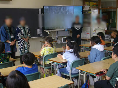 1年生を対象に、図書ボランティアさんたちがクリスマス読み聞かせを開いてくださいました。