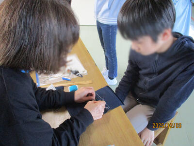 細かい作業に悪戦苦闘する場面もありましたが、熱心に取り組んでいました。刺繍は非常に緻密なため、全員の完成には少し時間がかかりそうですが、完成品は素敵な「壁掛け」になる予定です。6年間のアイヌ文化学習の集大成!出来上がりが楽しみですね。
