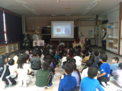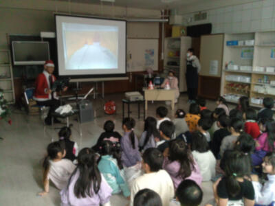 1年生を対象に、図書ボランティアさんたちがクリスマス読み聞かせを開いてくださいました。