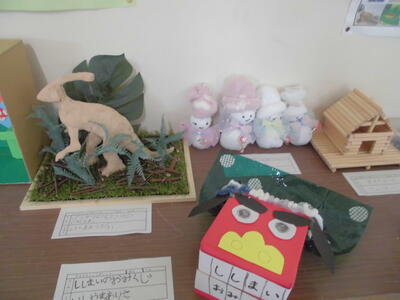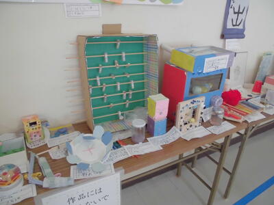 児童玄関前と各教室前に「冬休みの作品展」を行っています(22日まで)。力作揃いで、冬休み中の子どもたちの頑張りが伝わってきます。学級では「冬休みの作品発表会」も行われ、工夫したこと、大変だったことなどが発表されました。