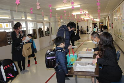 新1年生のみなさんは、きれいな服装を身にまとい、期待に満ちた表情を浮かべながらお家の人に手を引かれ、校門をくぐってきました。