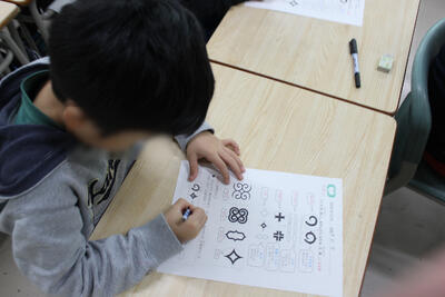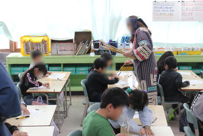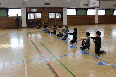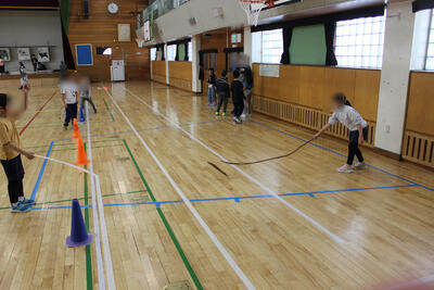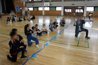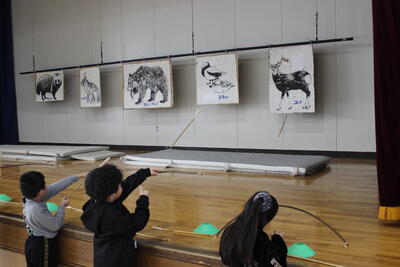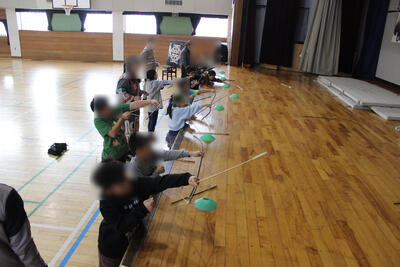 アイヌ語で「ポン(pon)」は「小さい」、「アイ(ay)」は「矢」を意味します。直訳すると「小さな矢」のことです。しかし、これは子ども用のおもちゃではありません。ヒグマやシカなど、大きな獲物を狩るための練習になるだけでなく、山からお預かりしたキムンカイ(ひぐま)の子どもと遊び、よろこんでもらうための弓矢です。今回はそのポンアイのさきにつける矢骨部分に、アイヌ民族に昔から伝わる文様(シリキ)を描きました。四つのシリキ「モレウ」「アイウシ」「ウタサ」「シク」が紹介され自分が描いてみたいシリキを選んで矢にかきました。出来上がったアイは実際に体育館で試射して、カムイ(神)の魂を送る儀式での弓矢を体験しました。
