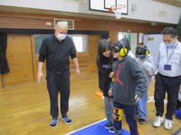 1219_福祉体験学習(5年生) 投稿日時 : 2025/12/19 編集長 カテゴリ: 5年生の福祉体験学習は、装具や特殊なサングラスなどを身に付けた、高齢者疑似体験活動でした。数日前と同じく、こちらも社会福祉協議会や関係の方々に来校いただきました。5時間目には教室でお話しを聞き、6時間目には体育館で実習です。装具は想像していた以上の重さだったようで、「見えにくい」「動きづらい」など、身をもって体験できたようでした。