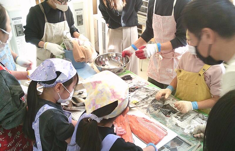 3年生は総合的な学習の時間で「千歳川とサケ」の学習に取り組み、前回はサケの採卵を体験しました。今回はサケの表皮を使って、栞を作りました。さけのふるさと千歳水族館のスタッフの方にサポートを受けながら、オリジナルの作品を完成させていました。