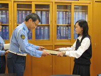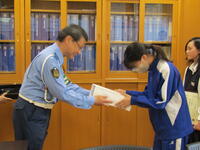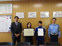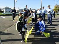 【部活動】交通安全旗贈呈式 投稿日時 : 09/30 担当 カテゴリ: 2025.09.30 千歳市と千歳警察署からの依頼で 地域の児童生徒が安全に横断できるように 交通安全横断旗を美術部の生徒がデザインしました! 横断旗は北陽小学校の1年生に贈りました。